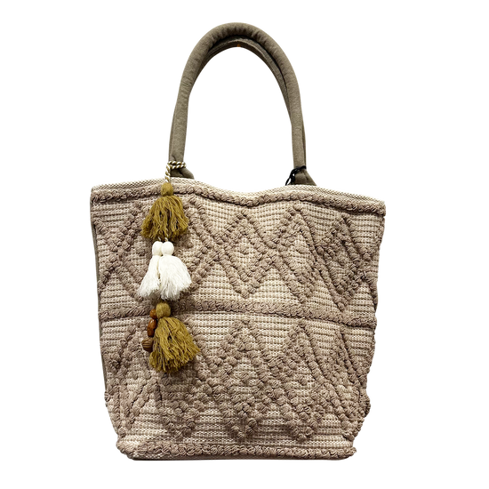 Beige Diamonds Pattern Pure Cotton Tote Bag