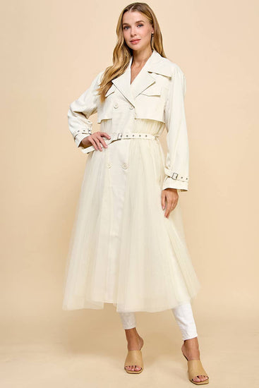 Double Breasted Mesh Bodice Classic Trench Coat