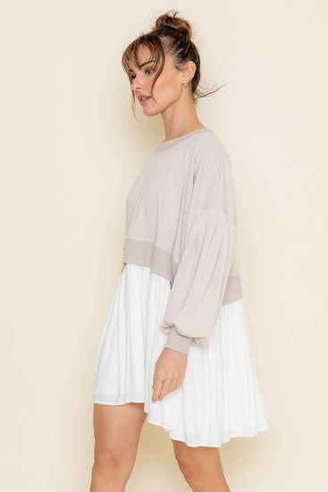 Comfy Round Neck Drop Shoulder Crop Mini Dress