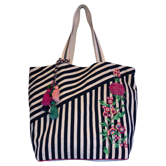 Discover the perfect blend of elegance and functionality with the Embroidered Stripes Tote. This spacious 15" x 21" tote is designed for the modern woman, offering ample room for all your essentials. Ideal for daily errands or travel, it promises reliability and style.