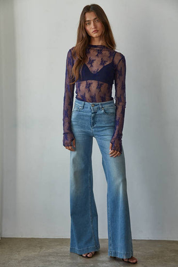 Introducing the Aubrey Lace Top , a whimsical addition to your fall/winter wardrobe. Crafted from a blend of 90% nylon and 10% spandex, this romantic top features a fit ideal for a night out. With its mock neck and long sleeves, the knit jacquard lace design adds a touch of elegance. Care is simple, just hand wash and you're ready for your next stylish outing.