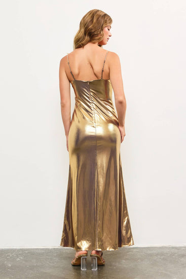 METALLIC FOIL STRAP LONG DRESS