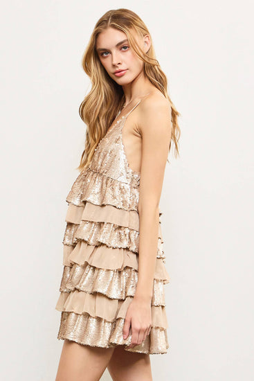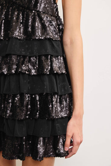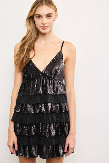 MULTI LAYER TIERED RUFFLE SEQUIN DRESS