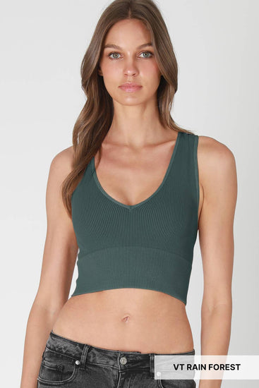 Size: One Size. Vintage washed ribbed knit crop top featuring a plunging v-neckline. Fabric:92% Nylon / 8% Spandex, Made in the USA. All time Best Seller A stylish and versatile top featuring a seamless design, a plunging V-neckline, and cropped length.NS8192