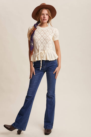 Pointelle Knit Peplum Top