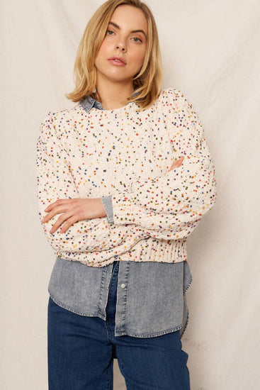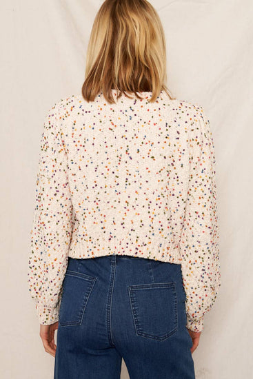 Puffed Sleeve Cropped Confetti Sweater 90% Polyester 10% Nylon Size S(2) - M(2) - L(2)