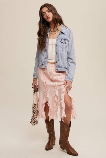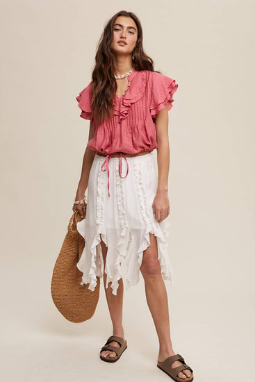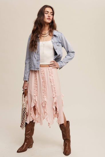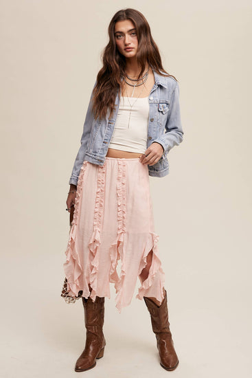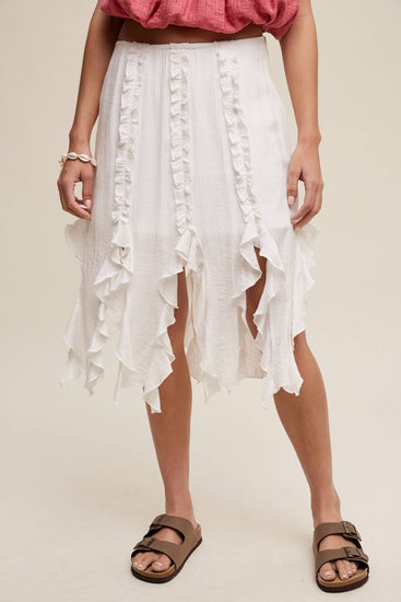 A flowy and romantic statement skirt perfect for adding a touch of elegance to any outfit Ideal for casual wear or dressed-up occasions