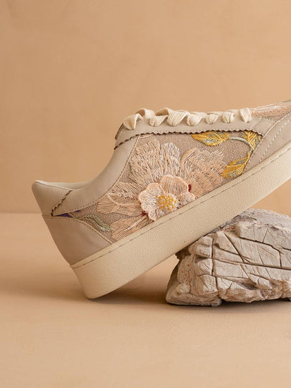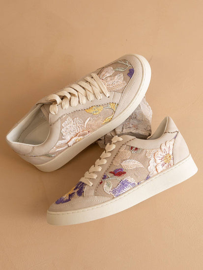 The Tammi | Light Grey Floral Applique Sneaker