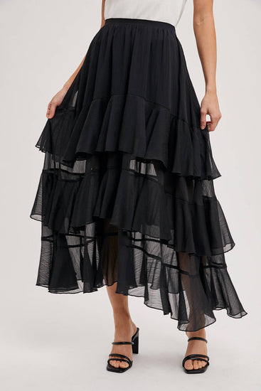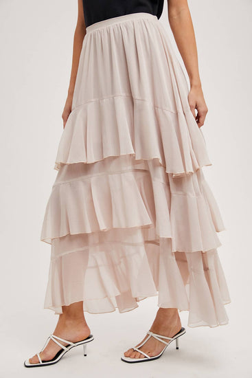 TIERED RUFFLE MAXI SKIRT WITH LINING