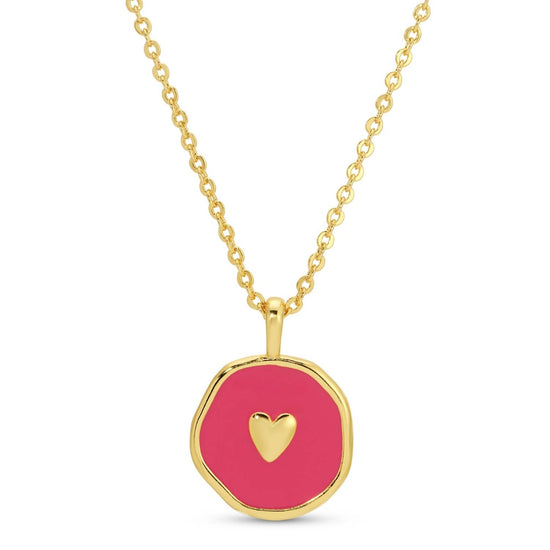Stunningly crafted, this tiny heart pendant features an enamel background on a brass, plated 18" necklace.